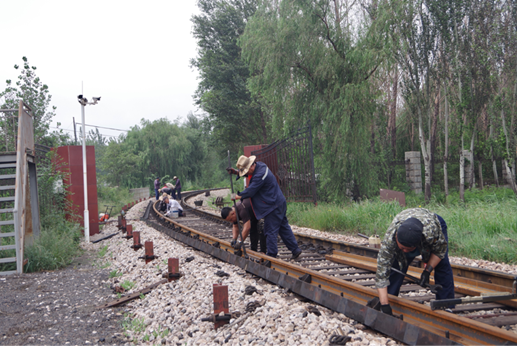 集團(tuán)專(zhuān)用鐵路線(xiàn)是公司煤炭、原料等物質(zhì)運(yùn)輸大動(dòng)脈,它的暢通能有效保證了集團(tuán)各生產(chǎn)車(chē)間的生產(chǎn)任務(wù)。由于工廠產(chǎn)量加大、載貨火車(chē)經(jīng)常超負(fù)荷運(yùn)輸,再加上線(xiàn)路鋼軌曲徑小等原因,造成軌道銜接處出現(xiàn)低接頭現(xiàn)象以及部分鋼軌損壞,這些情況極易影響行車(chē)安全。為了保證鐵路運(yùn)輸安全暢通,必須對(duì)存在安全隱患的75米鋼軌路段進(jìn)行維修更換,為不影響列車(chē)通行,鐵路總局要求維修工作必須在3小時(shí)內(nèi)結(jié)束,在時(shí)間緊任務(wù)重情況下,工務(wù)組全體職工發(fā)揚(yáng)不怕苦、不怕累的嘉晨精神,全身心投入到搶修工作中。