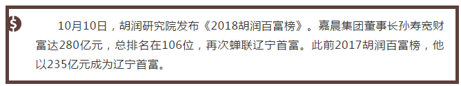 嘉晨集團(tuán)董事長(zhǎng)孫壽寬280億身家再次問鼎遼寧首富