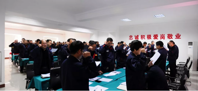 會議最后由左總領(lǐng)誓,全體人員莊嚴宣誓——“我們是光榮的營鋼人!安全生產(chǎn)是我們神圣的職責!為了自己的安全;為了家人的幸福;為了企業(yè)的發(fā)展。我宣誓:從我做起;遵章守紀!忠誠企業(yè);履行職責!查處隱患;拒絕違章!規(guī)范操作;警鐘長鳴!珍愛生命;確保安全??!