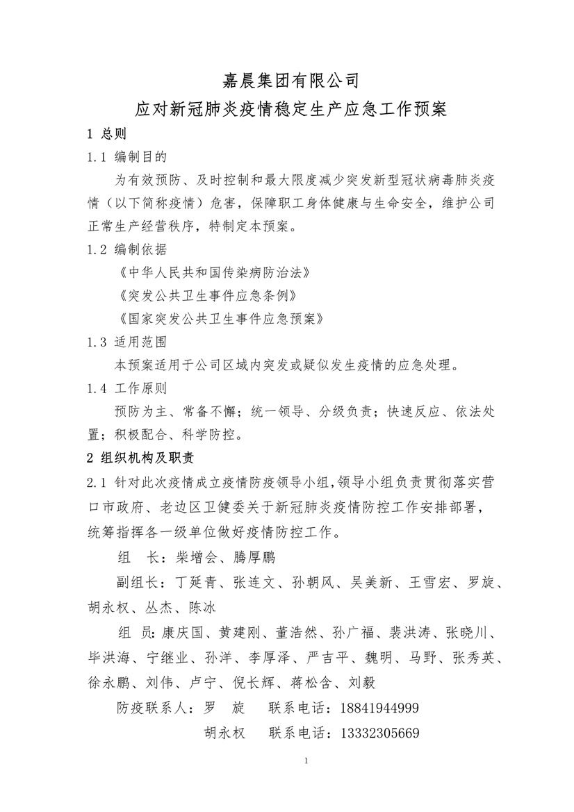 嘉晨集團應對新冠肺炎疫情穩(wěn)定生產(chǎn)應急工作預案